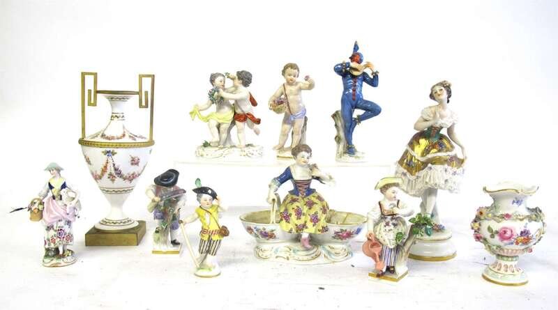 Group of eleven porcelain figures and vases meissen and others, 19th/20th century