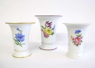 Three Meissen porcelain floral painted vases late 19th/early 20th century