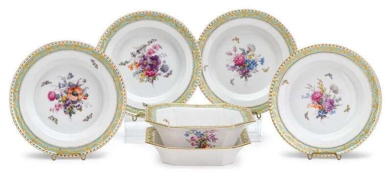 Group of KPM Kurland pattern hand-painted and gilt porcelain serving dishes 19th century