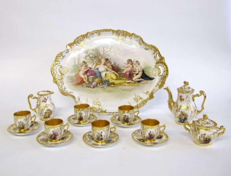 German gilt and painted porcelain tea service for six early 20th century