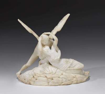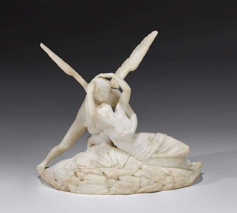 Italian carved marble figural group, 'Psyche and Cupid' late 19th century, after antonio canova