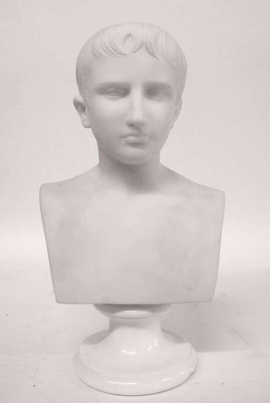 Carved to depict a young Caesar, atop socle base, signed P. Barranti Firenze.