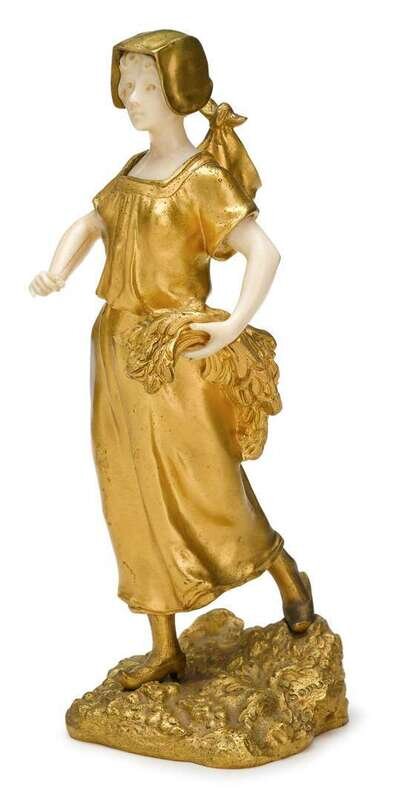 Theophile Francoise Somme (French, 1871-1952) large gilt bronze and ivory figure, Dutch girl with wheat early 20th century