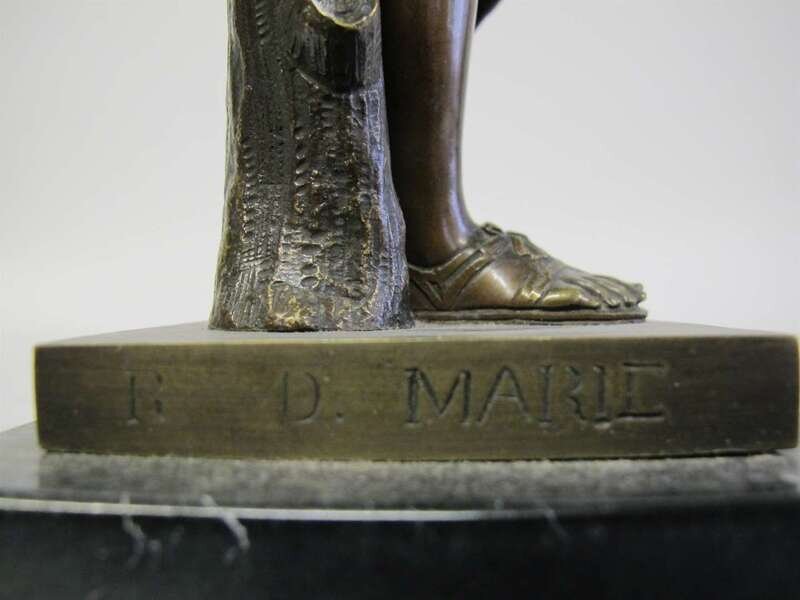 Mid-brown patina depicting a standing female figure, on square and green marble base, signed R.D. Marie.