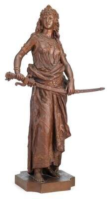 Bronze, reddish brown patina, raised on chamfered square base signed "A. Levy' in cast.