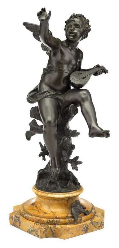French bronze and Siena marble statue 'cupid playing mandolin' 19th century