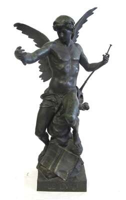 French bronze figure "Le Livre" late 19th century, after emile louis picault
