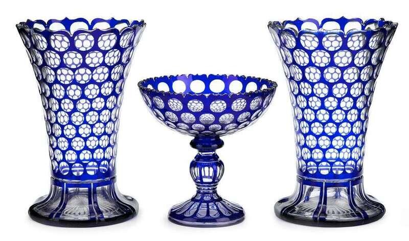 Bohemian cobalt cut to clear glass garniture set circa 1900