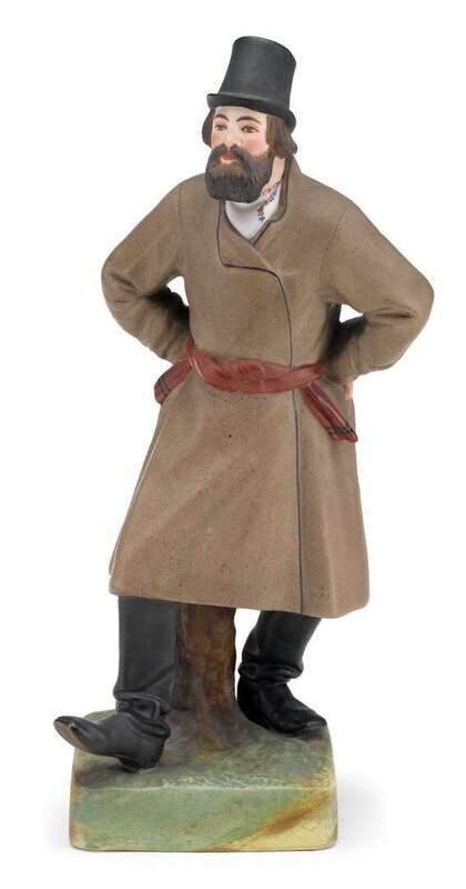 Russian Imperial Porcelain bisque figure of a Dancing Man garnder, moscow, circa 1890