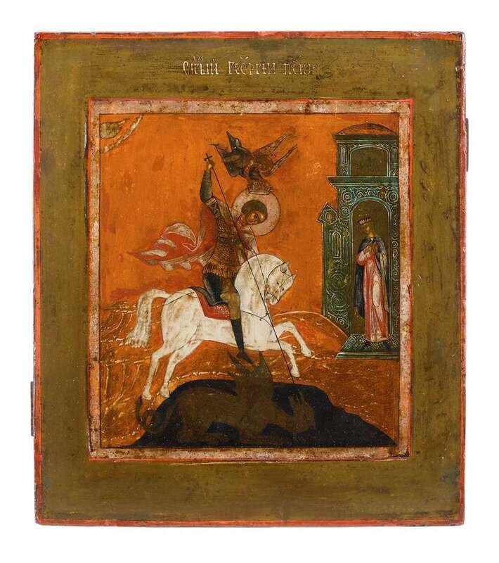 Russian St. George and the Dragon icon 19th century