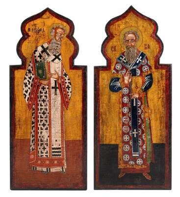 Pair of Russian icon panels, Sava and Vsevolod