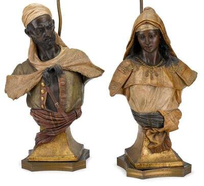 Pair of Friedrich Goldschieder terracotta Moorish busts late 19th century, vienna