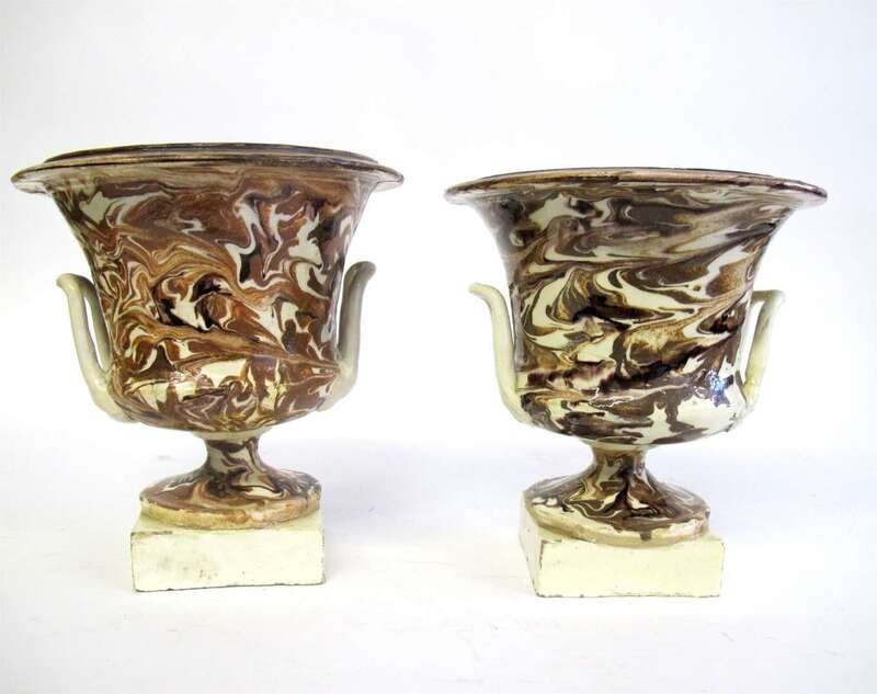 Pair of Staffordshire Agateware-type urns 18th century