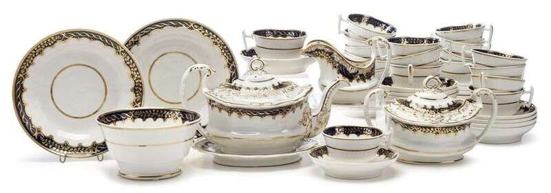 Staffordshire porcelain cobalt and gilt tea service 19th century