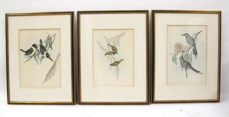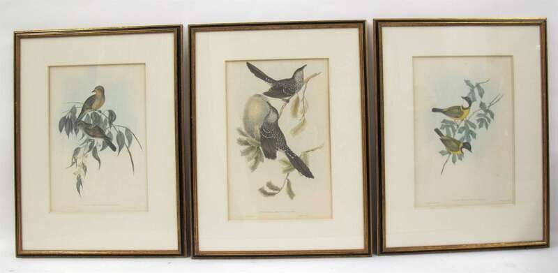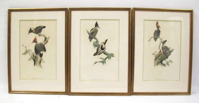 The hand-colored lithographs depicting a variety of birds perched in the branches, each marked J. Gould & W. Hart del. et lith. (9).