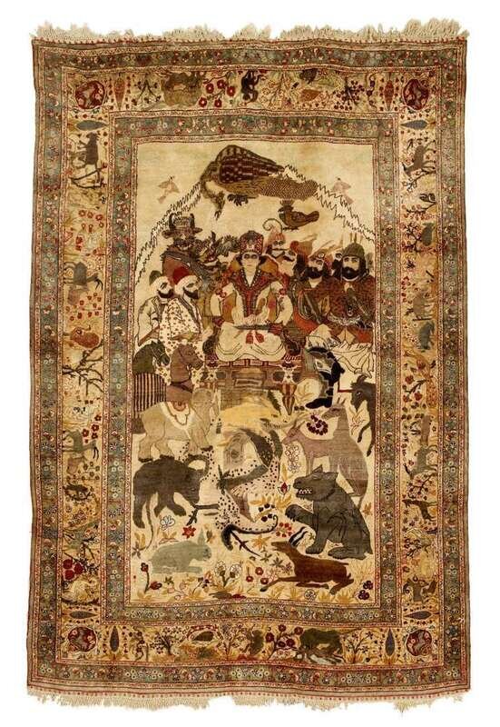Silk Tabriz pictorial rug northwest persia, circa 1st quarter 20th century
