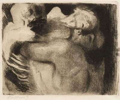 KÄTHE KOLLWITZ (GERMAN, 1867-1945) "TOD UND FRAU UM DAS KIND RINGEND"