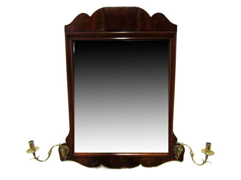 Queen Anne mahogany looking glass with brass candlearms 18th/19th century