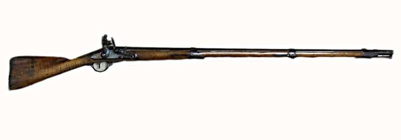 The musket in original flint with a full length barrel, with original lock and replaced frizzen, retains French markings.