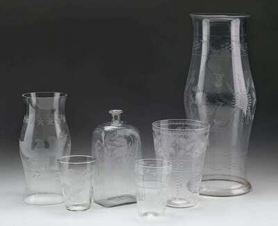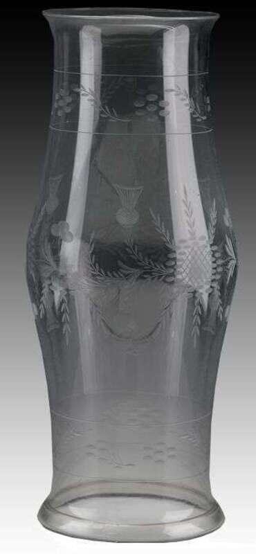 Large etched, uncolored glass hurricane shade 19th century