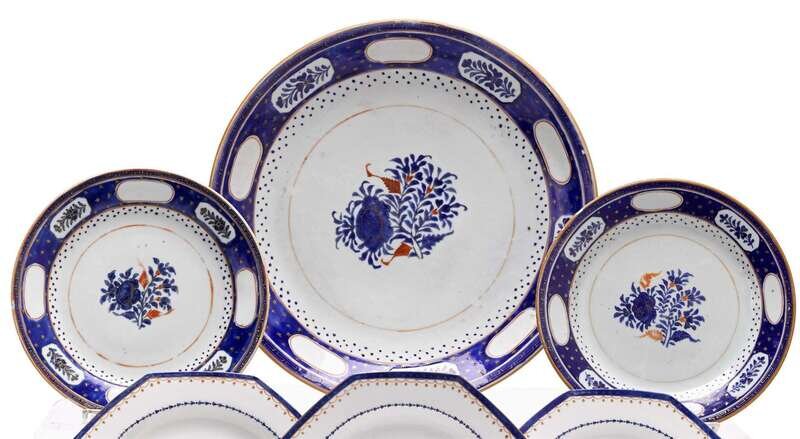 Chinese Export porcelain charger and pair of plates made for the Persian market 18th century
