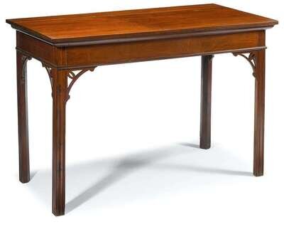 Rectangular top above conforming frieze and molded straight legs joined by brackets.