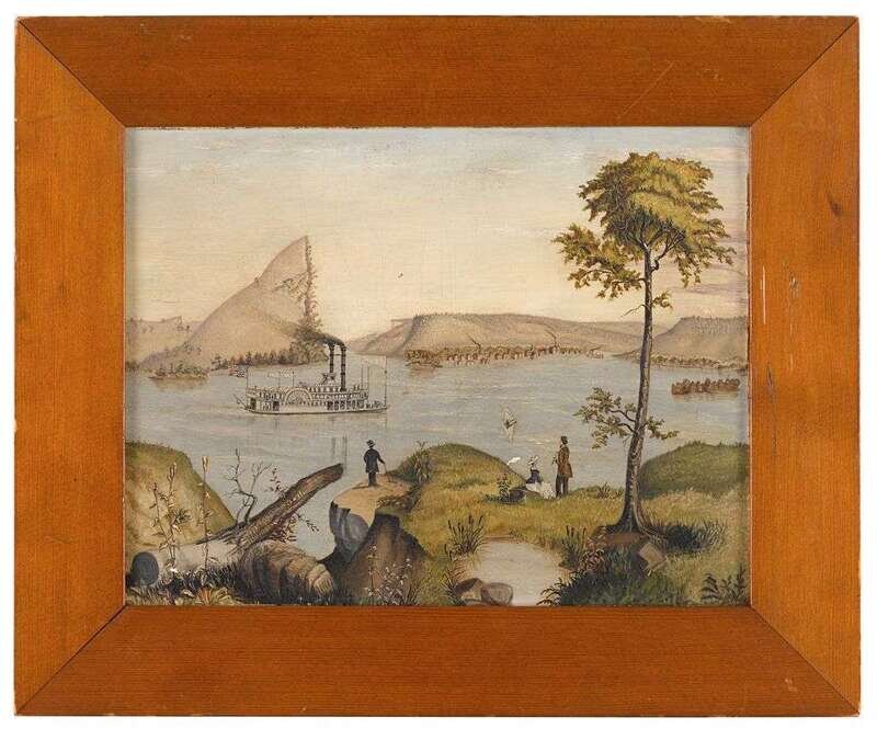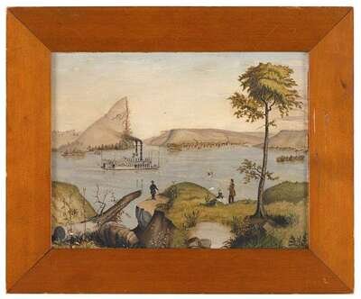 American School 19th century hudson river view with sidewheeler "kandotta"