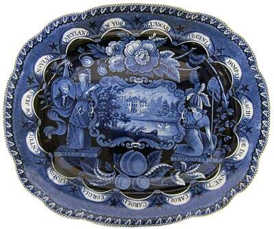 Large Staffordshire Historical blue transfer-printed platter clews, first third 19th century