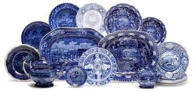 Large Staffordshire Historical Blue transfer-printed platter clews, first third 19th century