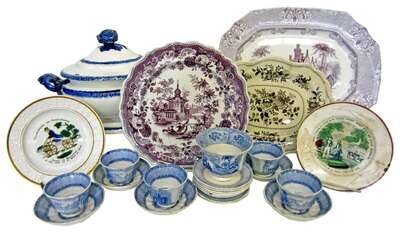 Group of Staffordshire transfer-printed tablewares first half 19th century