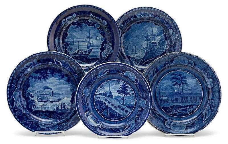 Including "The Union Line," plates with the "Baltimore and Ohio Railroad," both inclined and level, "The Kent East Indiaman," and "Dartmouth," all with shell border.