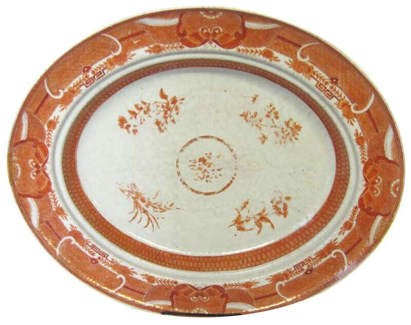 Chinese Export porcelain orange "Fitzhugh" oval serving platter early 19th century