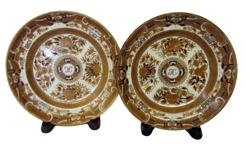 Pair of Chinese Export porcelain "Brown Fitzhugh" dishes from the Hone Family service circa 1820