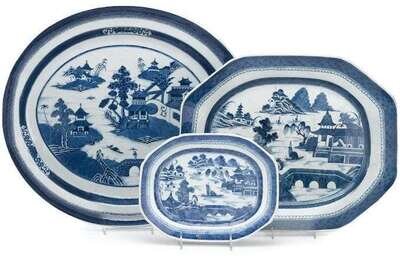 Three Chinese Export porcelain "Canton" serving platters 19th century