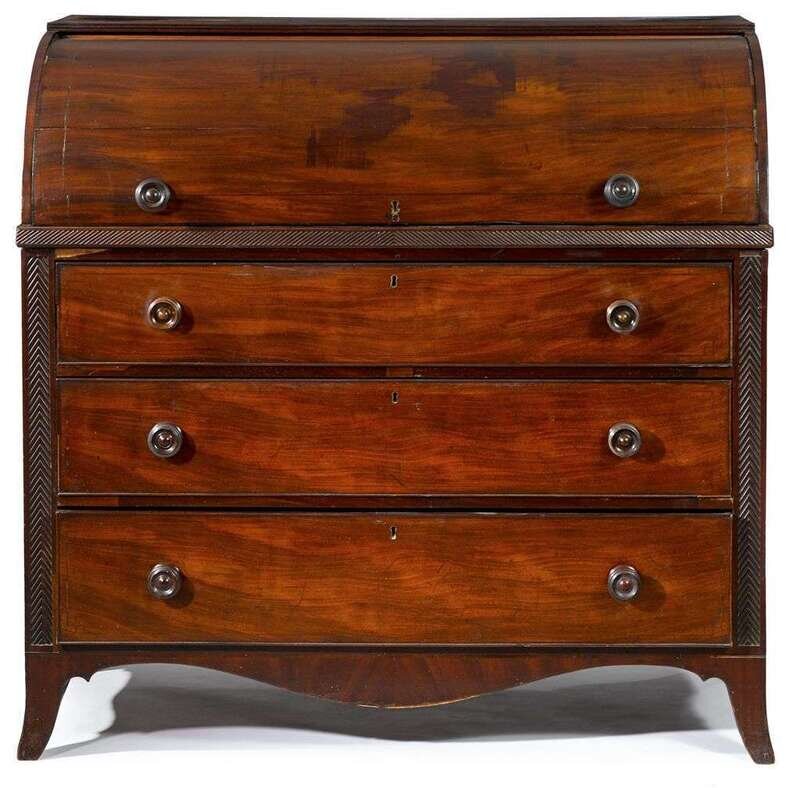Federal mahogany cylinder desk attributed to george hendree (1792-1834), richmond, va