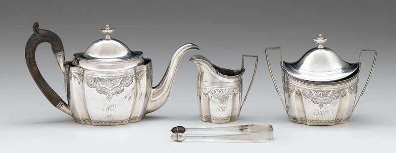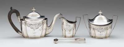 Three piece silver tea service james & abraham simmons (active 1802-1814), new york, ny, circa 1805