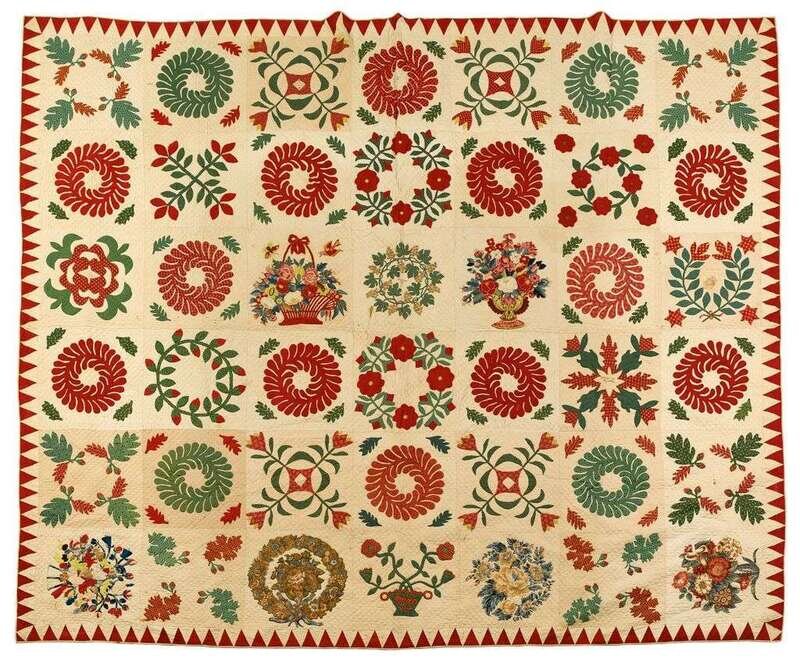 Appliqued and autographed album quilt cecil and baltimore counties, md, dated "1847"