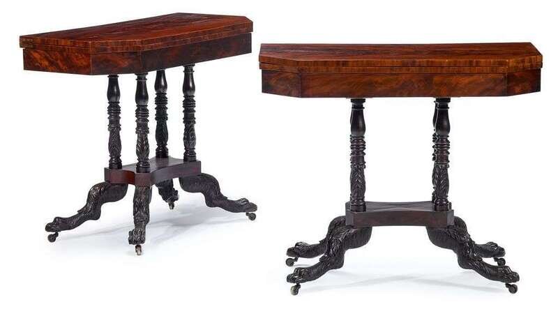 Pair of Classical mahogany folding top games tables new york, early 19th century