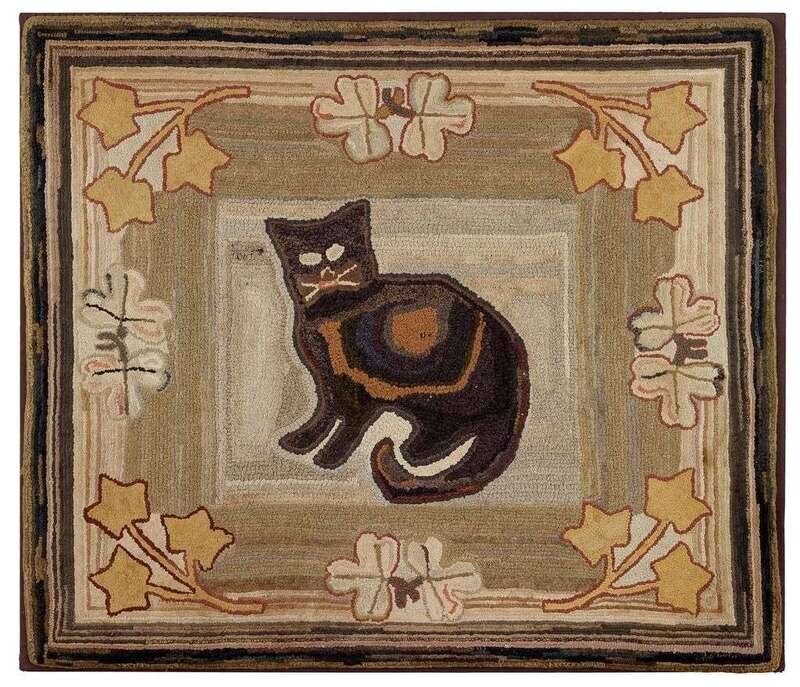 Pictoral hooked rug late 19th/early 20th century