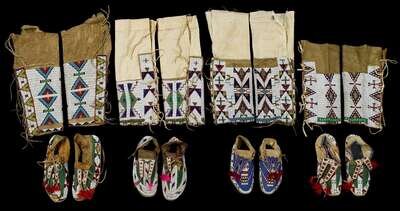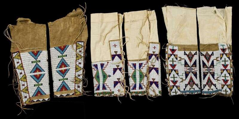 Three pairs of Sioux beaded hide women's leggings late 19th/early 20th century