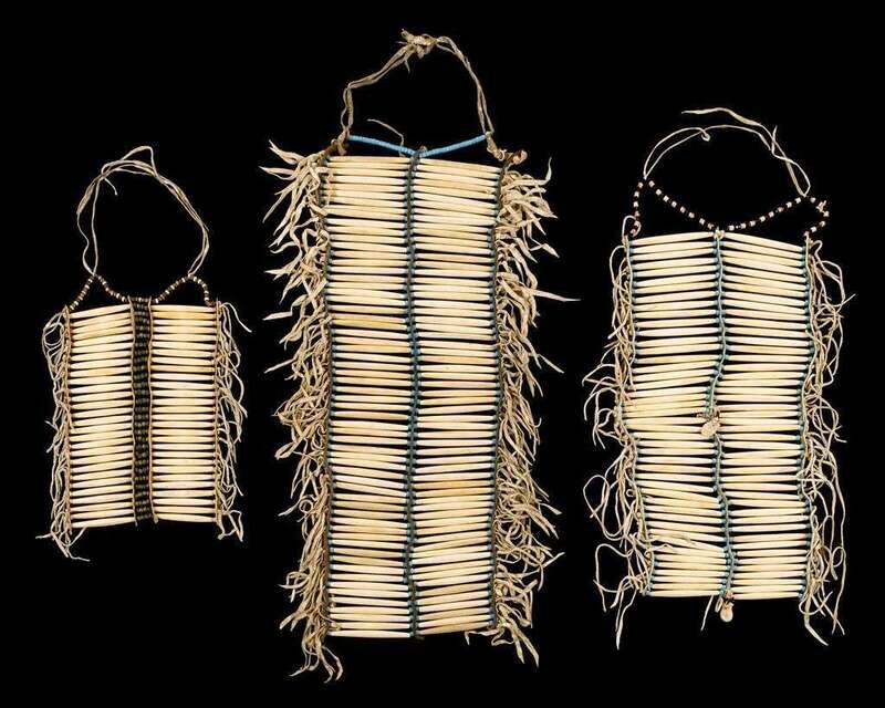Three Lakota hair pipe bone, bead and hide breastplates fort yates, north dakota, circa 1950
