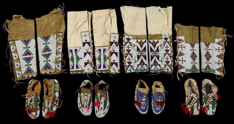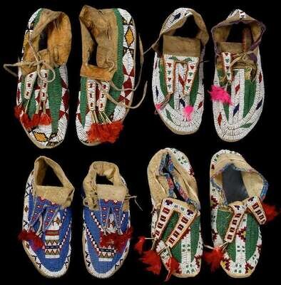 Four pairs of Sioux beaded ceremonial moccasins first half 20th century, fort yates area