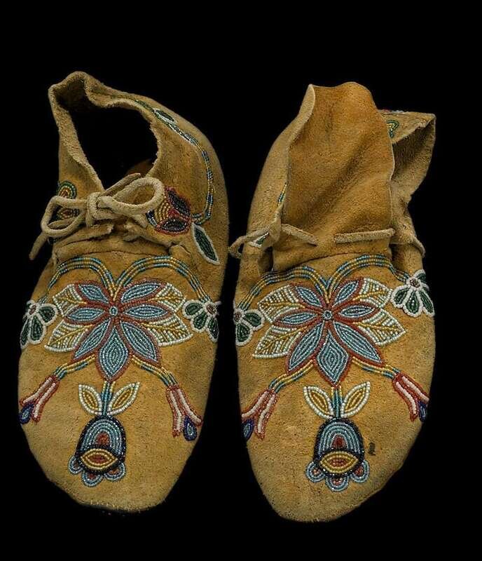 Pair of Crow beaded hide moccasins montana, first half 20th century