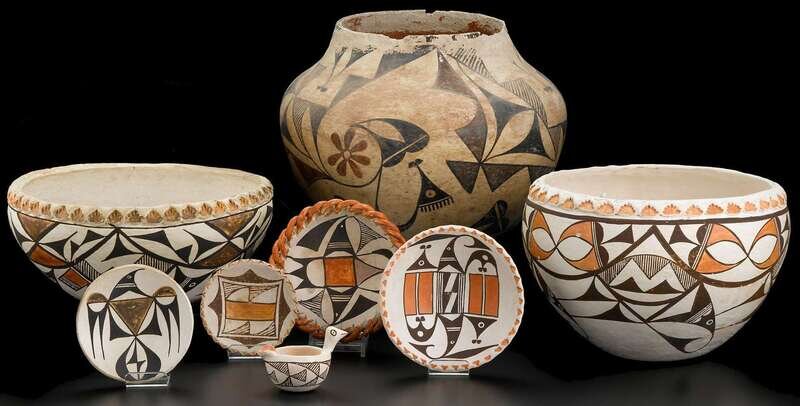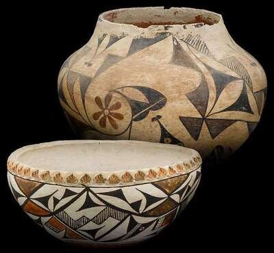 Two Acoma polychrome pottery items new mexico, late 19th and 20th century