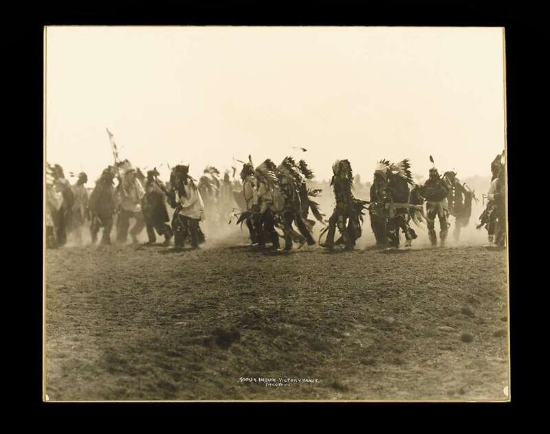 Including "Sioux Indian Victory Dance"; "Bears Teeth"; "Passing of Winter"; "Sioux Camp at Standing Rock Agency North Dakota"; "The Sundance Sioux"; "The Orator"; and "Dog Travois," most mounted on board, all with handwritten captions identifying photographer and subject to recto.
