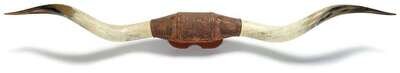 Mounted steer Longhorns "leather tooled by randy steffen, the long horn studio, cicso, texas"