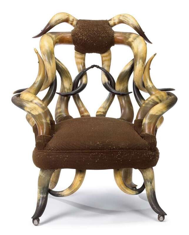 Longhorn arm chair attributed to wenzel friedrich (bohemian american 1827-1900), texas