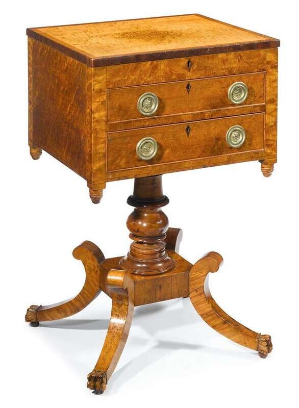 Classical figured maple and mahogany workstand school of joseph barry (1757-1838), philadelphia, pa