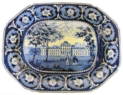 Staffordshire Historical Blue transferware well-and-tree platter l. & w. ridgway, first third 19th century
