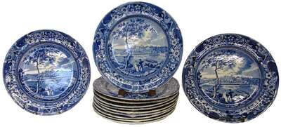 Twelve Staffordshire Historical Blue transfer-printed dinner plates stubbs, first third 19th century